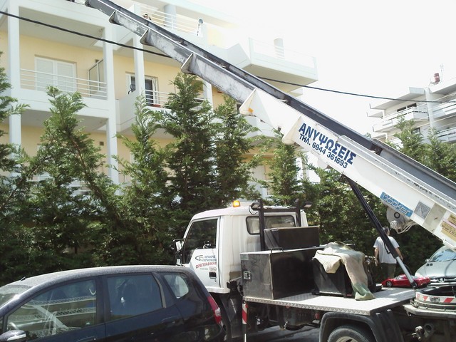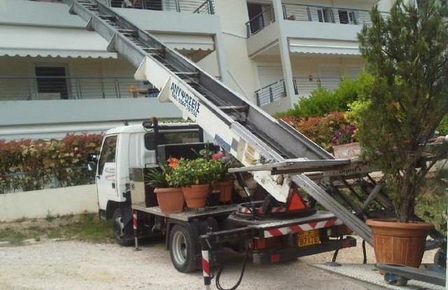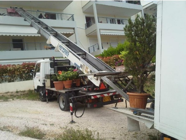 φορτηγά, ιδιόκτητο ανυψωτικό μηχάνημα και έμπειρο προσωπικό.
